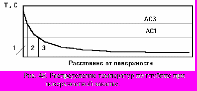 Последний способ широко используют в машиностроении. Сущность любого способа поверхностной закалки состоит в том, что поверхностные слои детали быстро нагреваются выше критических точек и создается резкий градиент температур по сечению. Рис. 48.