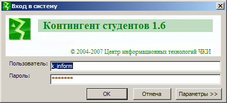 Для запуска программы щелкните два раза по ярлыку «Контингент» на рабочем столе. Когда появиться диалог «Вход в систему» (рис. 1) нажмите ОК, откроется главное окно программы.