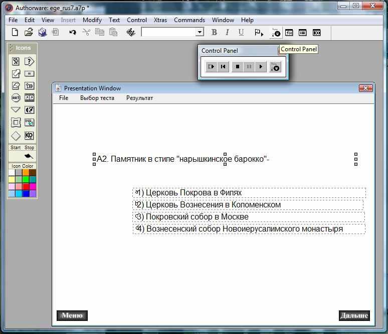 Разработка on-line тестов по истории в среде Macromedia Authorware