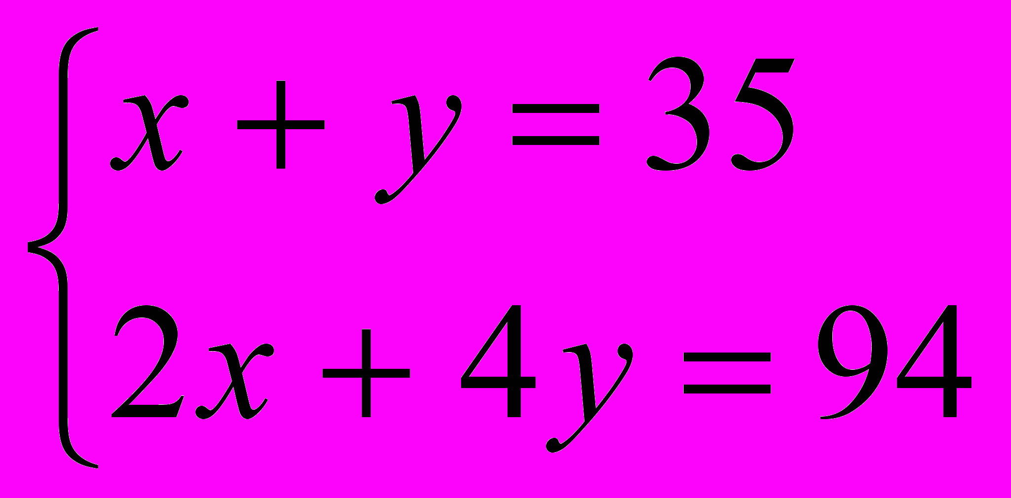 Текст: «В клетке находятся фазаны и кролики. У всех животных 35 голов и 94 ноги. Сколько в клетке кроликов и сколько фазанов?»