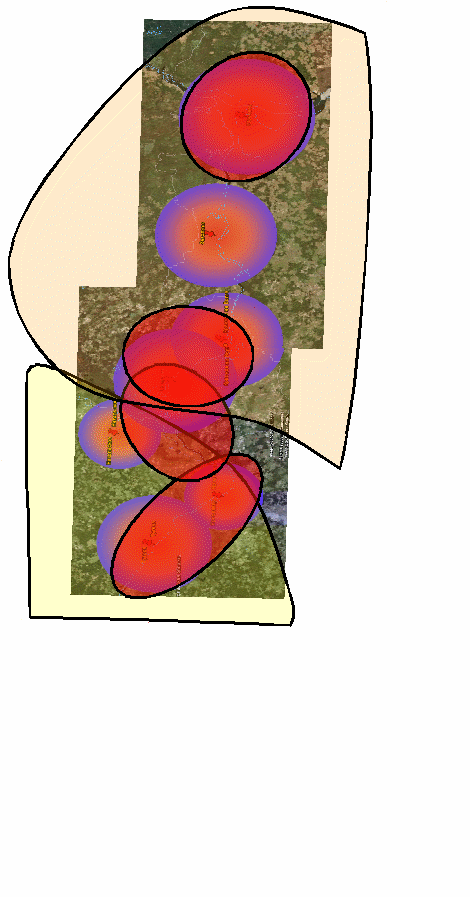 В результате обработки данных экспериментальных изысканий (рис 7, 8), во-первых, были определены и нанесены на карту граница рабочей зоны всей цепи ККС, а также выявлены зоны перекрытия зон действия каждой из ККС в отдельности, во-вторых, были обнаружены зоны разрыва дифференциального поля цепи в целом.
