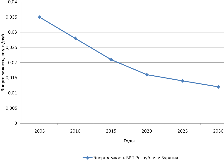 Согласно оценкам, выполненным в стратегии развития ТЭК Республики Бурятия, энергоемкость ВРП в 2020 году будет снижена на 40 %, рис. 1.1.