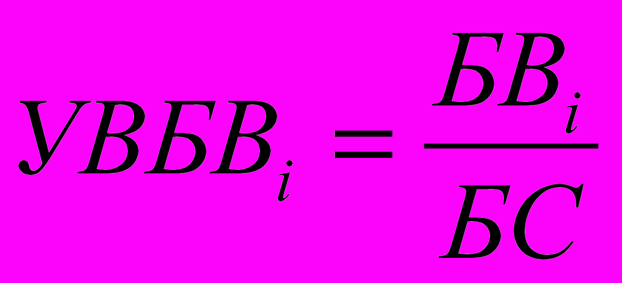 - По каждому предприятию рассчитывается удельный вес валюты баланса (УВБВi) предприятия в общем объеме: