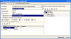 В конфигурации реализована возможность выгрузки данных в файл или отправка таких данных по электронной почте.