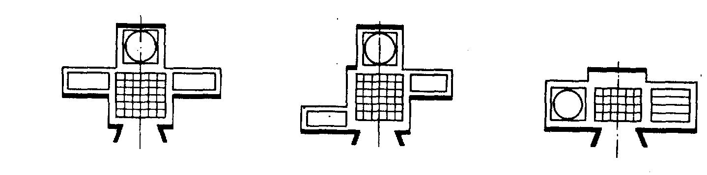 3.54. Особенностью планировочной трансформации является ее вспомогательный характер. Создавая варианты архитектурно-планировочных решений сцены и зала, она обеспечивает компромиссные условия для проведения различных мероприятий, не затрагивая основные параметры зала — форму и объем. Употребляются три основных вида планировочной трансформации, решающих различные задачи.