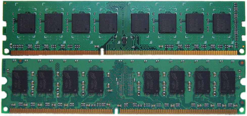 DDR SDRAM (от англ. Double Data Rate Synchronous Dynamic Random Access Memory — синхронная динамическая память с произвольным доступом и удвоенной скоростью передачи данных) При использовании DDR SDRAM достигается удвоенная скорость работы, нежели в обыкновенной SDRAM, за счёт считывания команд и данных не только по фронту, как в SDRAM, но и по срезу тактового сигнала. За счёт этого удваивается скорость передачи данных, не увеличивая при этом частоты тактового сигнала шины памяти. Таким образом, при работе DDR на частоте 100 МГц мы получим эффективную частоту 200МГц (при сравнении с аналогом SDR SDRAM).
