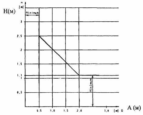 Рис. 2. Высота ограждения шахты в зависимости от расстояния до движущихся элементов лифта: