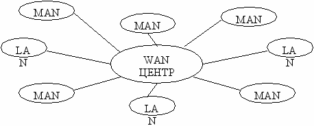 Рис. 3.6.2. Обобщенная структурная схема глобальной компьютерной сети.
