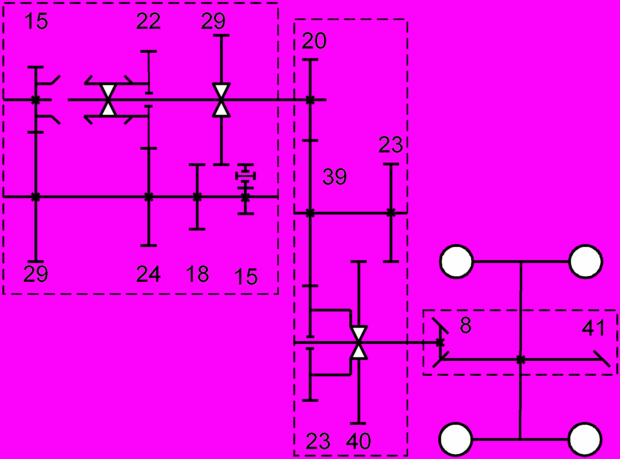 Рисунок 2 — Кинематическая схема трансмиссии автомобиля ГАЗ-69