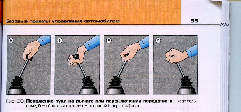 Положение правой руки на рычаге переключения передач показано на рисунке 5.