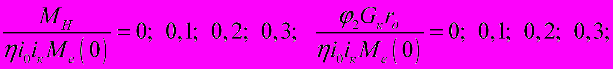 1. Определить и проанализировать максимально реализуемый дифференциалами тяговый момент при различных коэффициентах сцепления колес с дорогой: