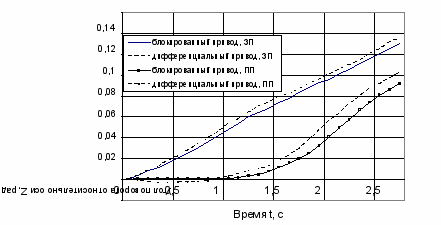 3. На дорогах с низким коэффициентом сцепления необходимо ограничение коэффициента блокировки МСД легкового автомобиля до значения 2,5 и необходим подбор интенсивности нарастания момента блокировки с увеличением разности угловых скоростей ведущих колес.