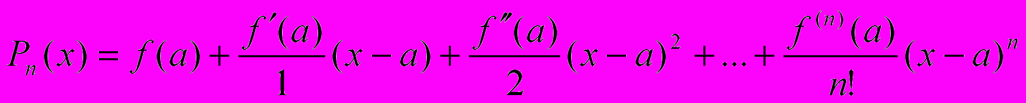 Доказательство. Представим функцию f(x) в виде некоторого многочлена Pn(x), значение которого в точке х = а равно значению функции f(x), а значения его производных равно значениям соответствующих производных функции в точке х = а.