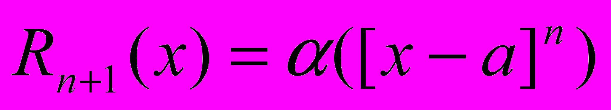 Как было замечено выше, многочлен не точно совпадает с функцией f(x), т.е. отличается от нее на некоторую величину. Обозначим эту величину Rn+1(x). Тогда: