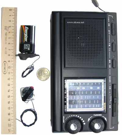 Комплект из Миниатюрного радиомикрофона МР-01, радиомикрофона с повышенной дальностью, чувствительностью Филин-1 и спецприёмник к ним СПР-3