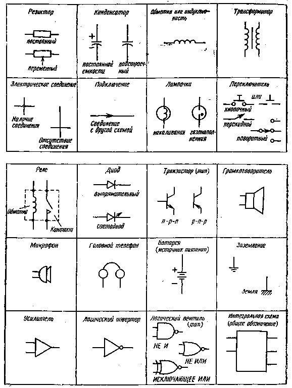 СХЕМНЫЕ ОБОЗНАЧЕНИЯ РАДИОДЕТАЛЕЙ И КОМПОНЕНТОВ