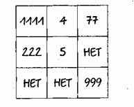 1 й столбец — (1111, 222, нет), 2 й столбец — (4, 5, нет), 3 й столбец — (77, нет, 999). (Для удобства запись сделана в строки.).