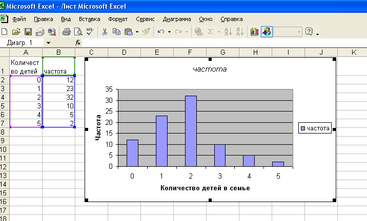 Замечательным свойством электронных таблиц является возможность графического представления числовой информации, содержащейся в таблице. Для этого существует специальный графический режим работы табличного процессора. В графическом режиме можно строить диаграммы различных типов, что придаёт наглядность числовым зависимостям. В частности диаграммы используются для наглядного представления данных, полученных в результате статистического исследования.