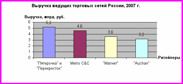 Рис.1. Выручка ведущих торговых сетей России, 2007 г.