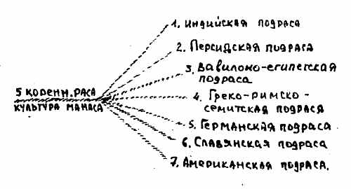 В пятой коренной расе человек будет приближать свою гибель тем, что называют злом. Ее сменит шестая коренная раса. Пятая коренная раса — это та раса, в которой Манас разовьется на физическом плане.