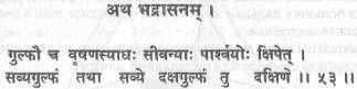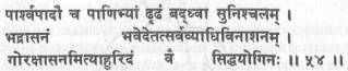 (54) Затем крепко обхвати пальцами ступни, которые лежат «на боку», и оставайся неподвижным. Это бхадрасана, которая разрушает все болезни. Йоги, достигшие совершенства (сиддхи), называют ее горакшасаной.