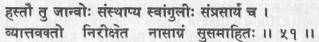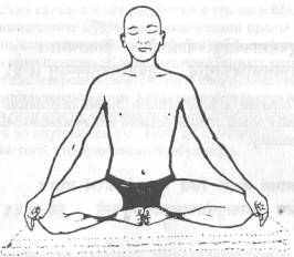 (51) Помести ладони на колени, растопырь пальцы, рот держи открытым и пристально гляди на кончик носа, сконцентрировав ум.