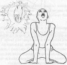 Глубоко вдохните через нос; выдыхайте, издавая звук наподобие рыка льва — «аааххх».
