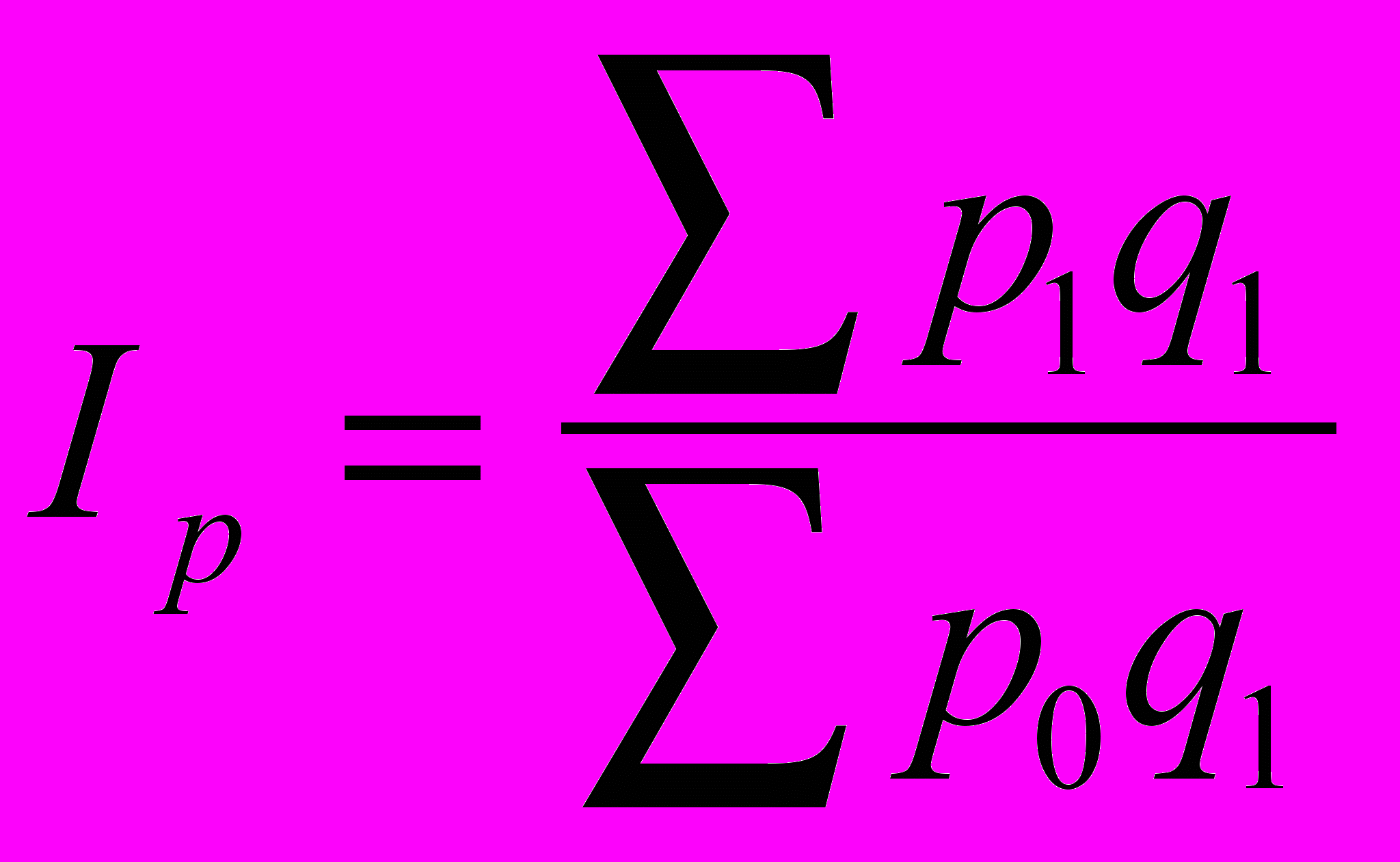 ,где в числителе дроби - фактическая стоимость продукции текущего периода, а в знаменателе - условная стоимость тех же товаров в ценах базисного периода.