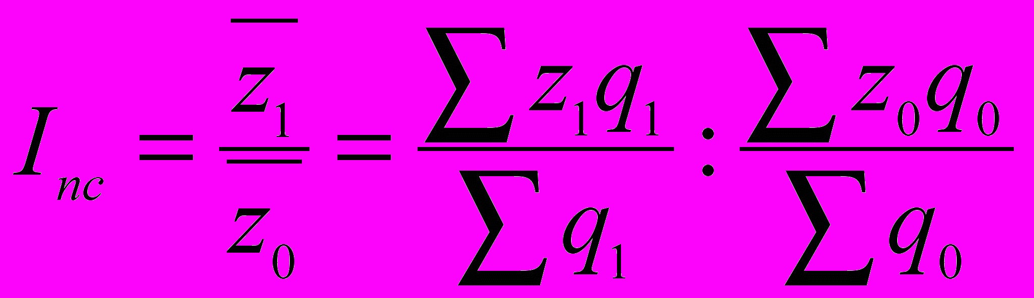 ,то индекс получается в результате деления величины показателя в базисном периоде на величину в текущем периоде.