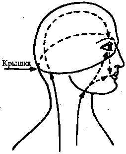 На рис. 43 показан путь потока энергии или возбуждения вверх по задней стороне шеи по верху головы к глазам и, хотя это не показано, к верхним зубам.