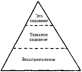 [Надписи (сверху — вниз): Эго сознание, Телесное сознание, Бессознательное.]