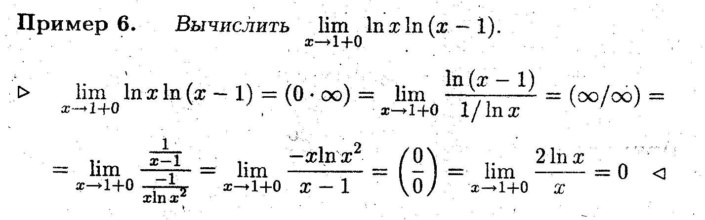 Замечание 4. Правило Лопиталя после простого преобразования можно применять для раскрытия неопределённостей вида (0•∞).