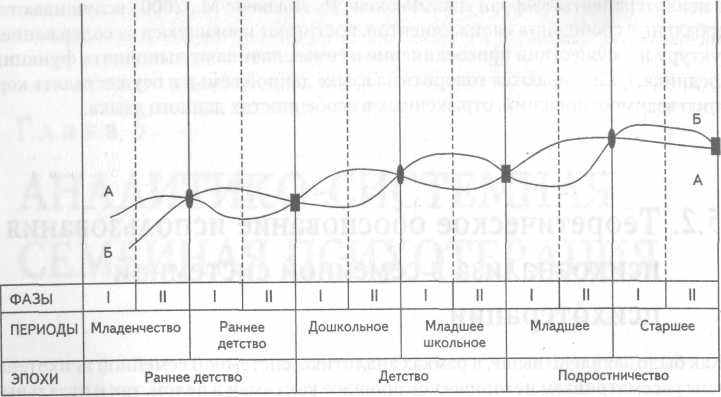 Анализируя характер ведущей деятельности в каждом периоде каждой эпохи, можно обратить внимание на определенную закономерность. Любая эпоха начинается с периода, в котором основной является деятельность в системе «ребенок — общественный взрослый», при этом развивается преимущественно мотивацион-но-потребностная сфера личности. Завершаются эпохи периодами, в которых главной предстает деятельность в системе «ребенок — общественный предмет» и совершенствуется преимущественно интеллектуальная, познавательная сфера.