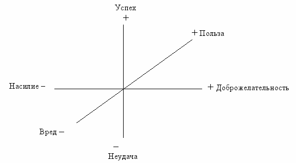 Ось «насилие-доброжелательность» отражает избранную форму общения.