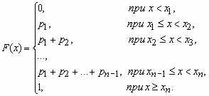 Если - дискретная случайная величина, принимающая значения x1 < x2 < … < xi < … с вероятностями p1 < p2 < … < pi < …, то таблица вида
