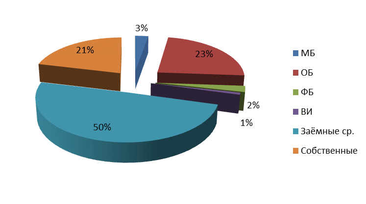 - заемные средства (кредиты российских коммерческих банков для реализации инвестиционных проектов предприятий) – 50%;