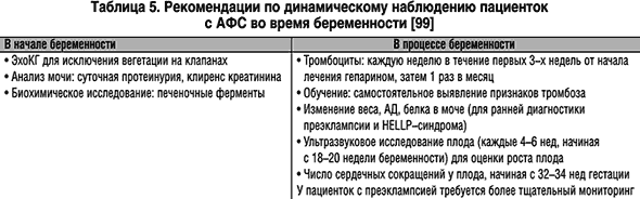 В таблице 5 перечислены общие рекомендации по ведению пациенток с АФС.