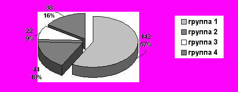 | Группы Показания | Группа 1 (n=142) | Группа 2 (n=44) | Группа 3 (n=22) | Группа 4 (n=38) | Всего (n=246) | |||||