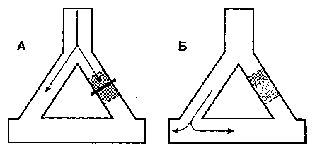 Рис. 19-14. Механизм возникновения реципрокной аритмии (т. е. механизм риентри)