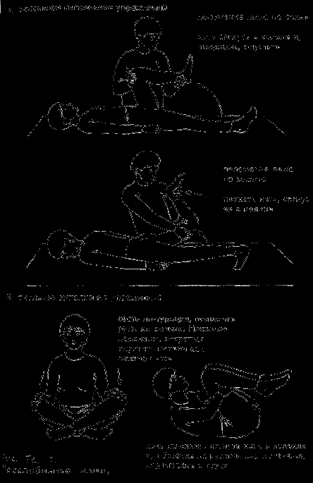 При слабости мышц дна таза и при возникновении частых позывов на мочеиспускание при полном опорожнение мочевого пузыря (без образования остаточной мочи) помогают упражнения, предназначенные для укрепления мышц дна таза, подобные тем, которые рекомендуется делать женщинам после родов. Для этого надо несколько раз подряд по возможности два-три раза ежедневно лежа на спине поднимать и опускать таз, напрягая при этом мышцы ягодиц (рис. 13). При склонности к задержке мочи, если больному приходиться тужиться, чтобы опорожнить мочевой пузырь, и если мочевой пузырь опорожняется не полностью (образуется остаточная моча), рекомендуется тренировать мочевой пузырь следующим образом: похлопать ладонью десять раз по животу в области расположения мочевого пузыря (1—2 удара в секунду), затем кулаком погладить с нажимом живот, начиная движение от пупка, двигаясь вниз к лобковой кости (рис. 14). Мужчинам рекомендуется опорожнять мочевой пузырь не стоя, а сидя.