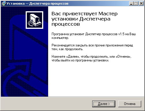 Для инсталляции приложения нужно запустить файл под названием Setup.exe после этого на экране появится окно мастера установки (смотри рисунок 1.1). Далее следуйте указаниям мастера.