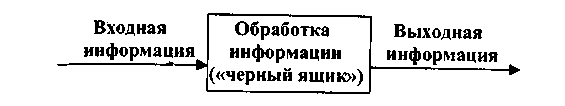 «Черный ящик» — это система, об устройстве и принципах действия которой мы ничего не знаем. Возможность автоматизированной обработки информации основана на том, что сам процесс обработки не требует его осмысления, т.е. происходит по принципу «черного ящика», когда важна лишь исходная (входная) и выходная информация.