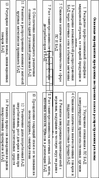 1. Выявлении причин и обосновании необходимости формирования программы построения канала распространения рекламы фармацевтического предприятия при использовании программно-целевого подхода при организации рекламных кампаний. Основные мероприятия данной программы приведены на рис. 5.