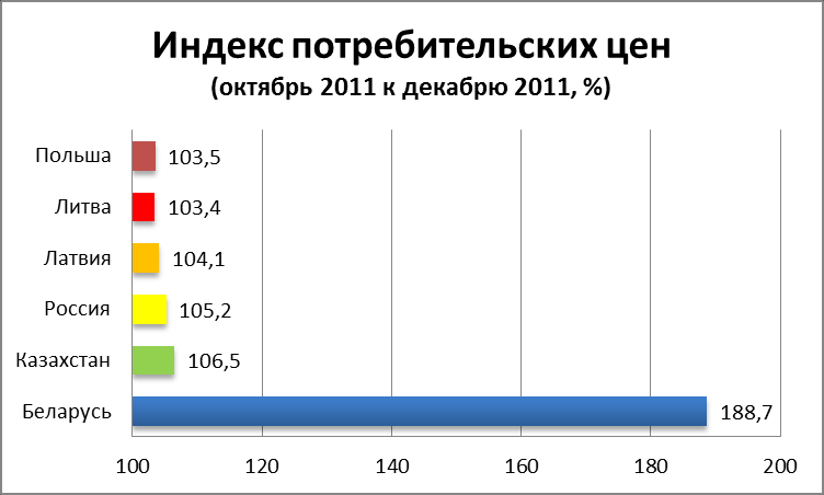 В октябре 2011 г. инфляция В Беларуси составила 8,2%, за 10 месяцев – 88,7%.