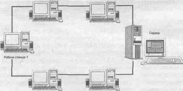 Мал. 8. Кільцева топологія нагадує топологію мережі із спільною шиною
