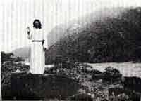 Несколькими днями позже я находилась в саду при ашраме и глядела вниз на долину. Я чувствовала, что во мне не осталось ничего незаконченного. Тогда я заметила Бабаджи, всего в белом, около реки. Несмотря на отделяющее нас расстояние, мне казалось, что Он очень близко и заполняет собою всю долину. Кроме того, было сильное ощущение, что Он это Любовь, Мудрость и Сила, и это были не просто слова, а качества, могущественное присутствие которых я ощущала.