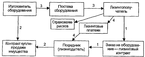 В косвенном лизинге участвуют, как минимум, три лица: промышленное предприятие, лизинговая компания и арендатор, но косвенный лизинг бывает и многосторонним.12
