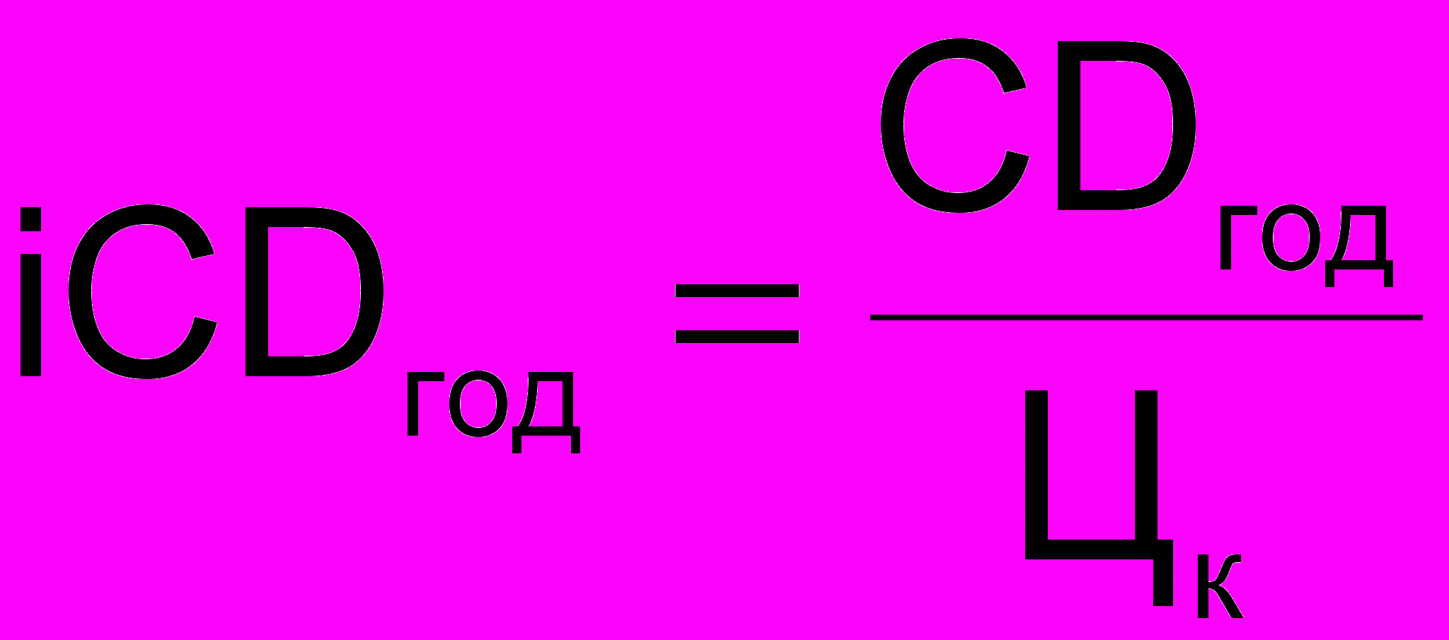 DD = Цn - Цк ;- годовой ставки дополнительного дохода (убытка):