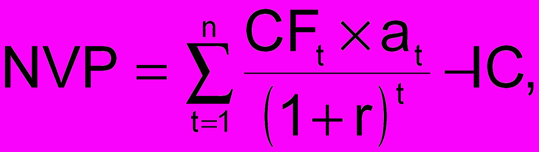 где at - понижающий коэффициент поступления денежных потоков, определенный экспертным путем.