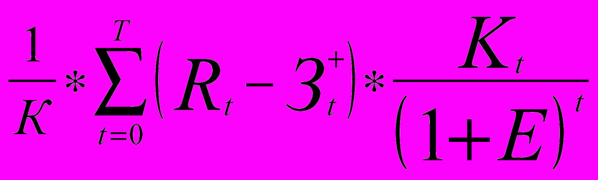 Модифицированный показатель ЧДД выражает разницу между суммой приведенных эффектов и приведенной к тому же моменту времени величиной капитальных вложений (К).